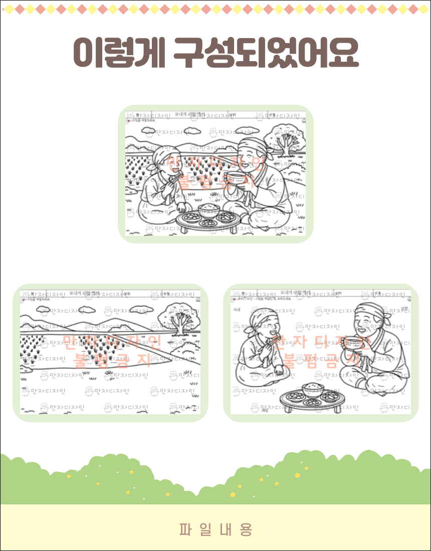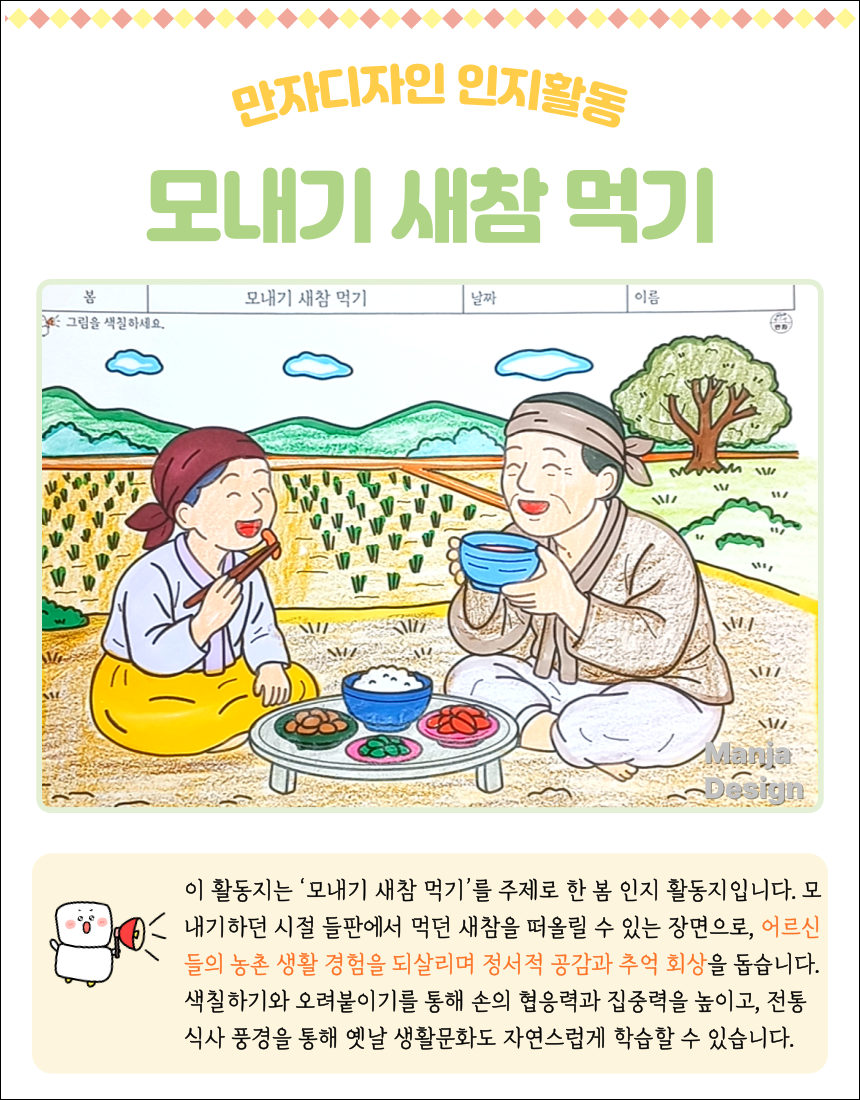 #모내기인지활동 #치매예방활동지 #농촌색칠공부 #부모님선물 #옛날생활회상 #어르신미술수업 #인지미술자료 #새참먹기 #시니어활동지 #만자디자인