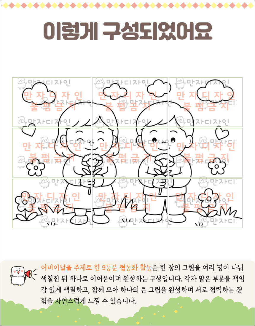 #어버이날협동화 #9등분그림 #단체활동지 #색칠공부 #인지학습자료 #감사표현활동 #유아미술 #노인인지활동 #어버이날수업 #공동작업그림