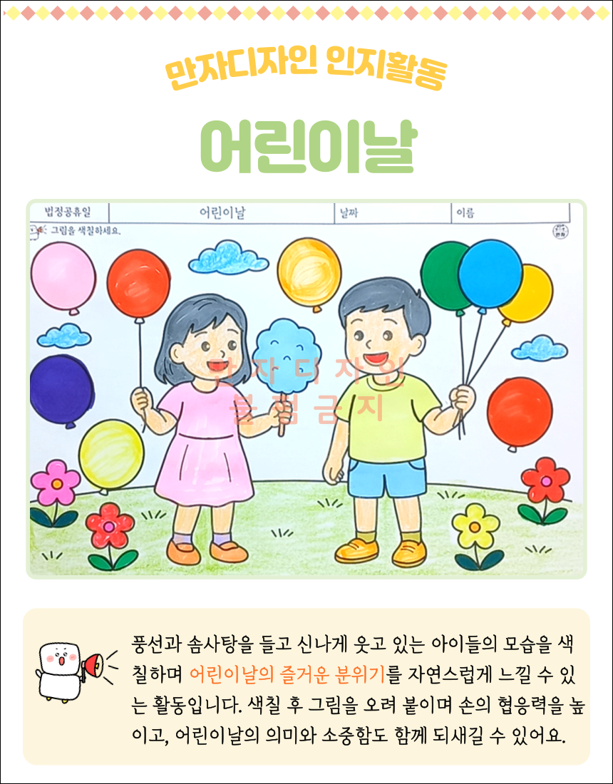 #어린이날 #색칠공부 #인지활동지 #풍선색칠하기 #오려붙이기 #유아활동 #어르신수업 #복지센터 #놀이학습 #만자디자인