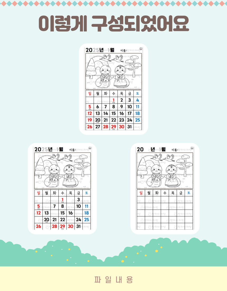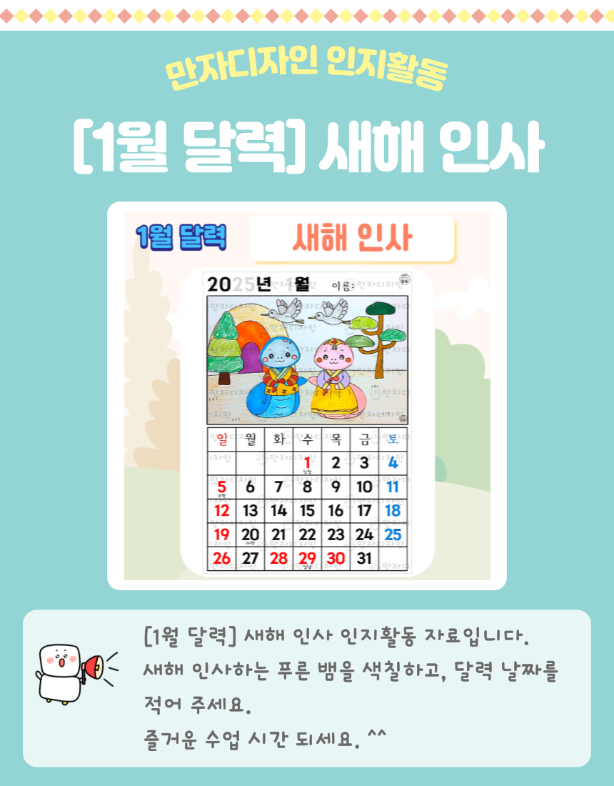 [1월 달력] 새해 인사 (색칠하기)