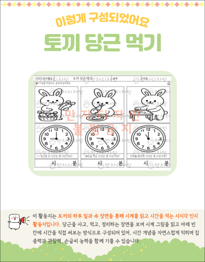 #시계읽기놀이 #시간개념인지활동 #토끼활동지 #시지각훈련 #두뇌훈련자료 #인지놀이 #시계공부 #집중력향상 #관찰력학습 #만자디자인