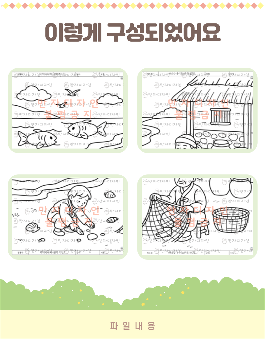 #협동화 #바다사나이 #치매예방활동 #색칠공부 #여름인지활동 #복지센터수업 #정서자극 #해안풍경 #감성회상 #4컷구성