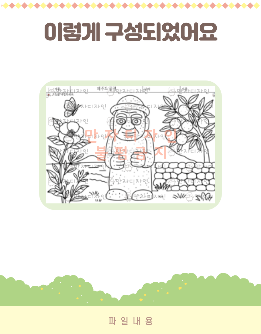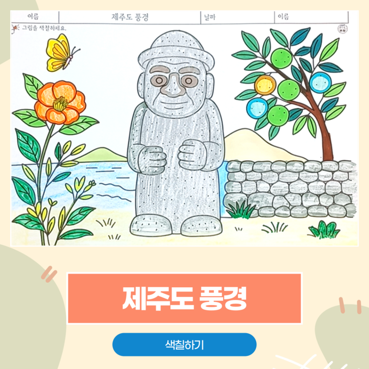 #제주도풍경 #돌하르방 #감귤나무 #색칠공부 #치매예방활동지 #초로기치매 #만자디자인 #감성인지활동 #회상치료 #복지관수업