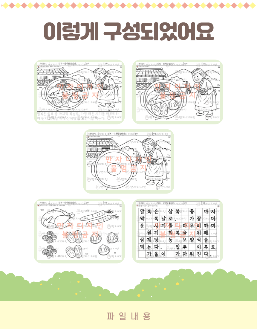 #말복 #삼계탕그리기 #여름보양식 #치매예방활동지 #어르신인지미술 #유아전통교육 #계절음식활동 #두뇌건강놀이 #색칠하기활동 #만자디자인