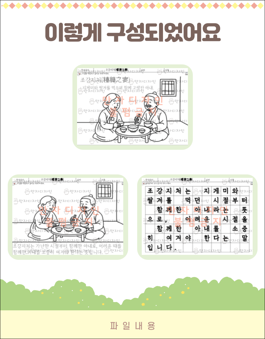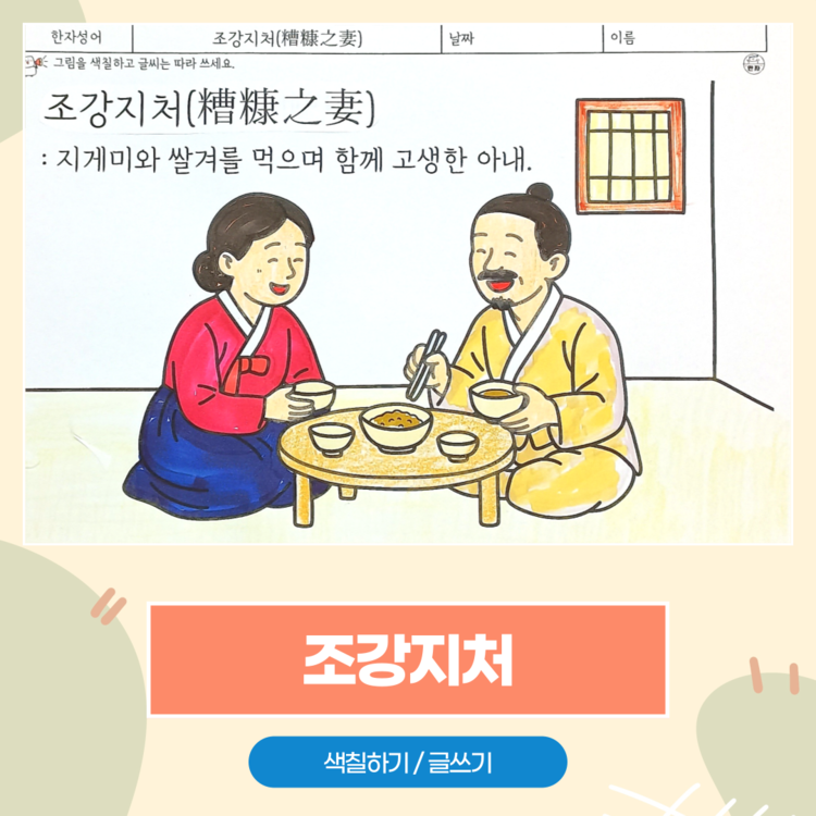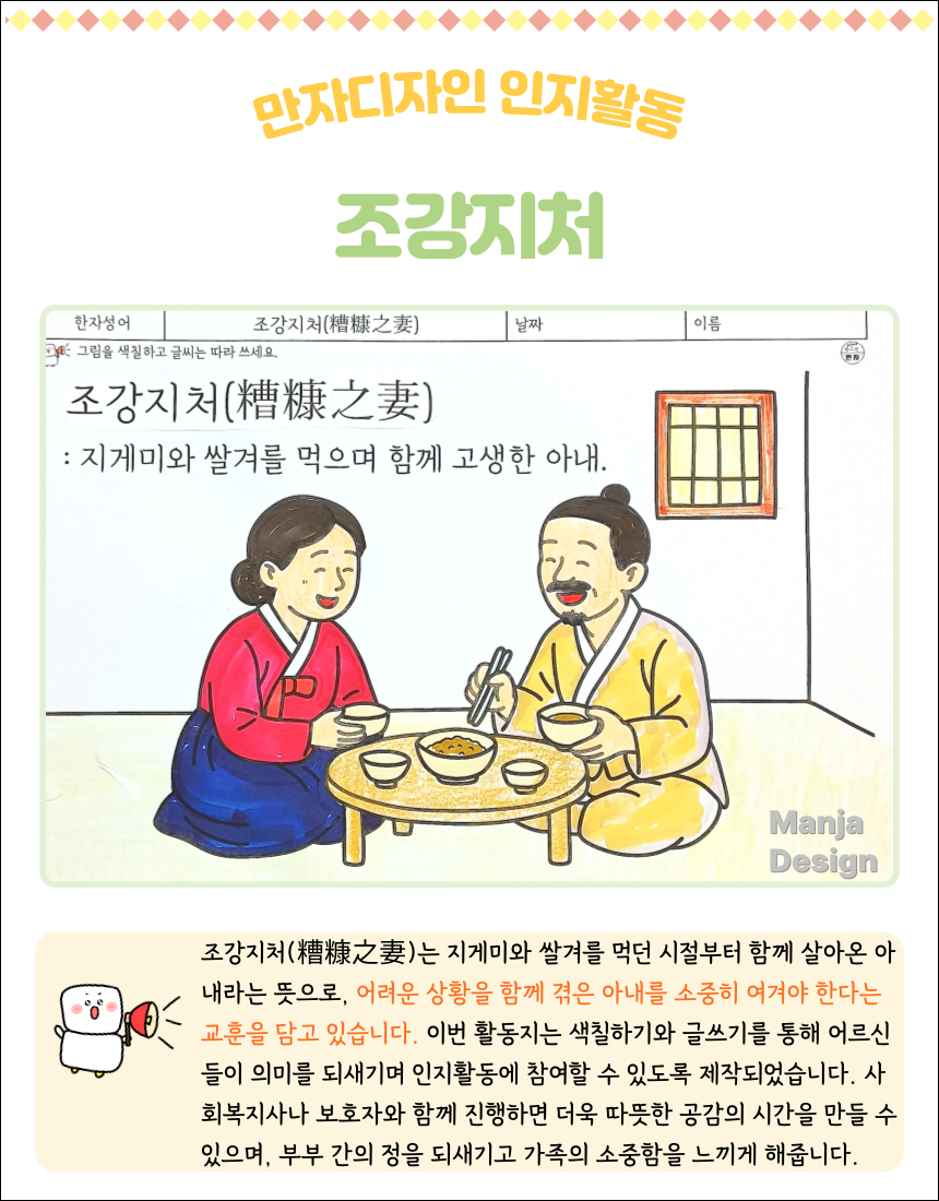 #조강지처 #한자성어 #색칠공부 #인지활동 #어르신활동 #사회복지사활동 #부부사랑 #전통문화 #뇌건강활동 #만자디자인