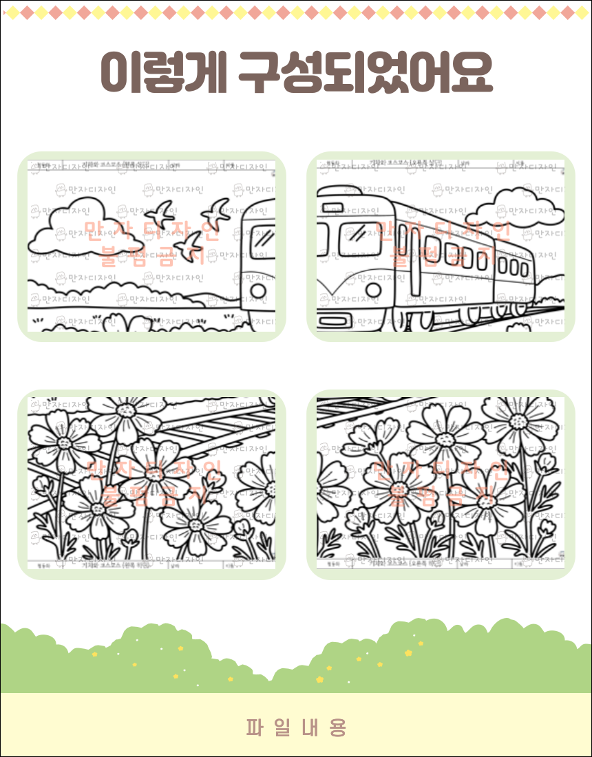 #만자디자인 #뇌건강 #인지활동 #어르신미술 #가을활동지 #코스모스그리기 #두뇌훈련 #색칠하기 #협동화