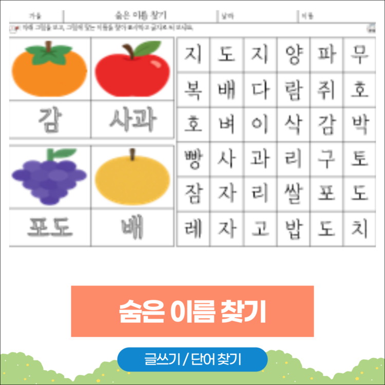 #가을인지활동지 #숨은이름찾기 #어르신두뇌훈련 #치매예방워크시트 #노인인지활동 #사회복지사수업자료 #무료활동지 #글자찾기게임 #부모님뇌건강 #만자디자인