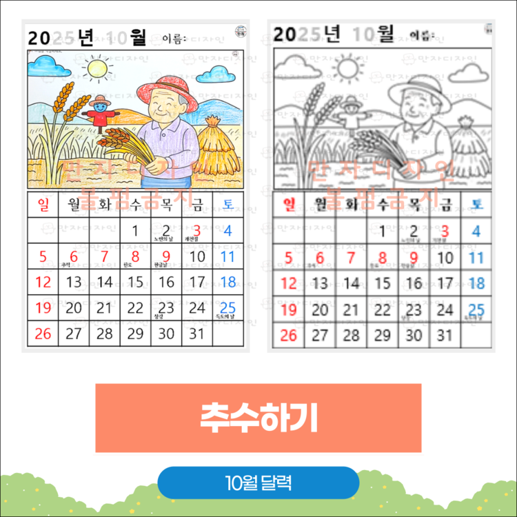 #추수하기 #가을달력 #치매예방활동 #어르신인지활동 #두뇌훈련 #사회복지사수업 #색칠하기활동지 #브레인웰니스 #부모님치매예방 #만자디자인
