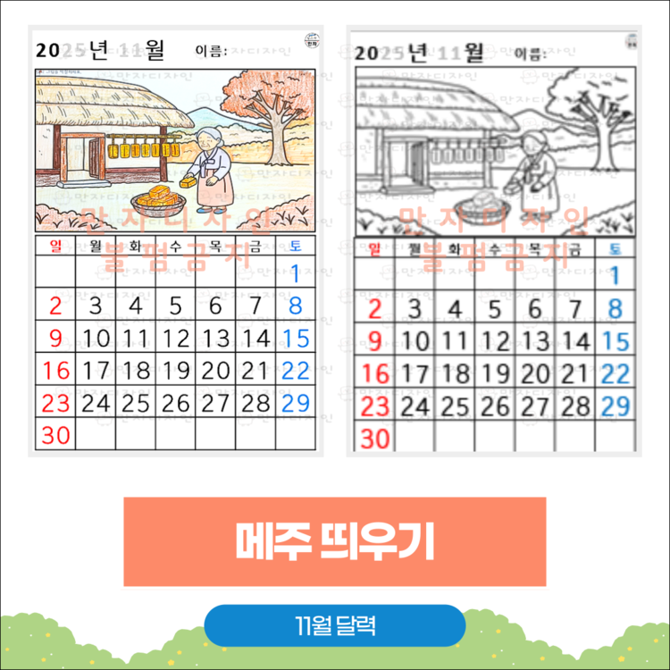 #메주띄우기 #11월달력 #전통문화 #인지활동 #색칠하기 #만자디자인 #절기활동 #치매예방 #어르신미술 #회상활동