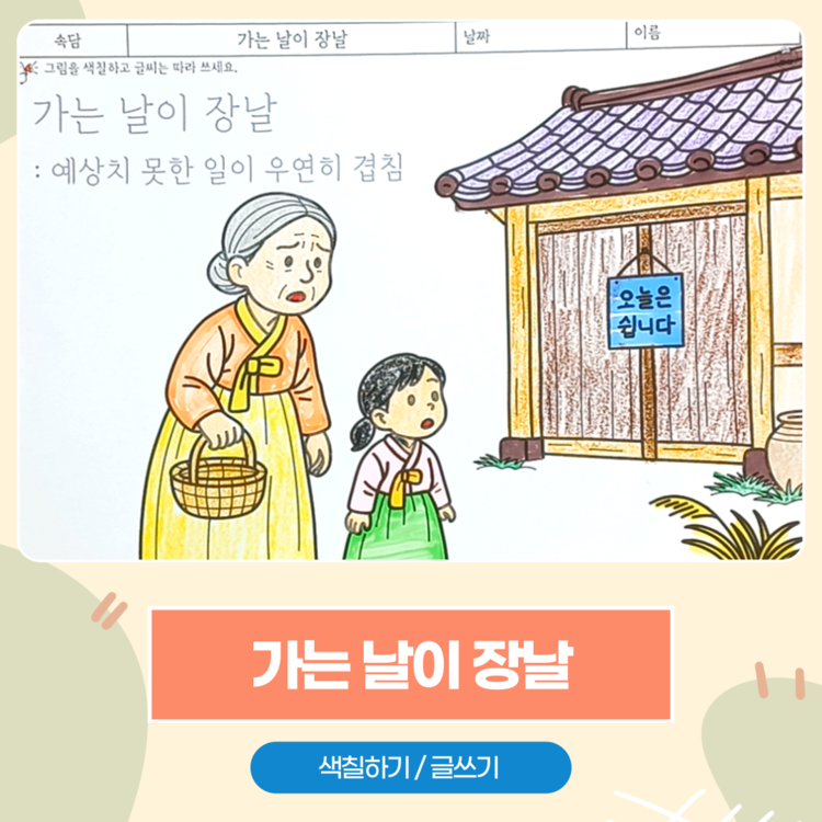 #가는날이장날 #속담인지활동 #부모님치매예방 #어르신색칠하기 #기억회상활동 #요양원활동지 #주간보호센터활동 #속담공부 #어르신두뇌활동