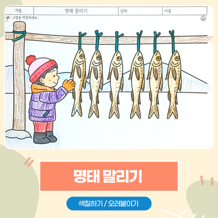 #명태말리기 #겨울인지활동 #어르신치매예방 #회상요법 #겨울활동지 #유아겨울공부 #색칠놀이