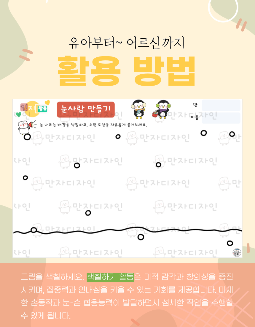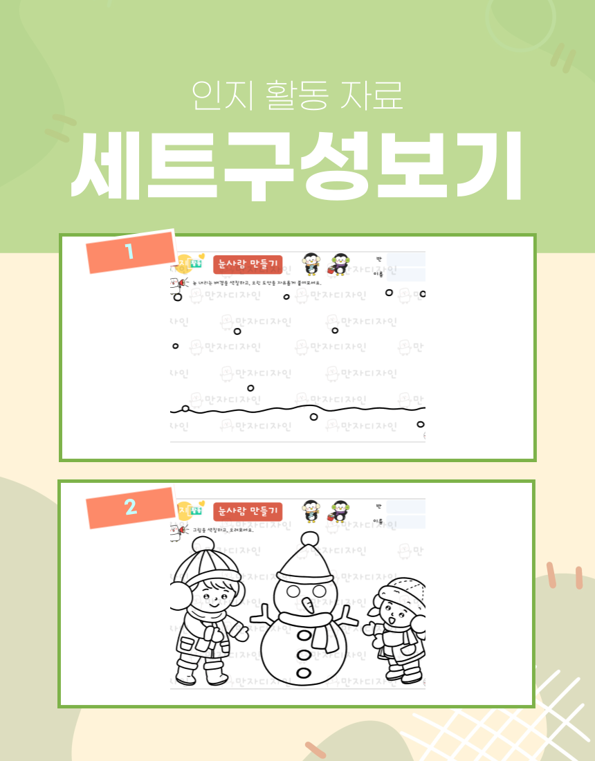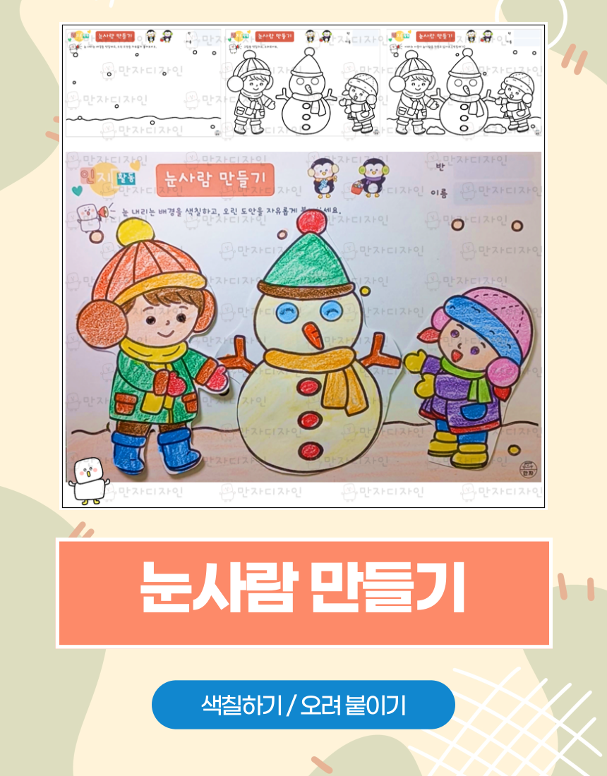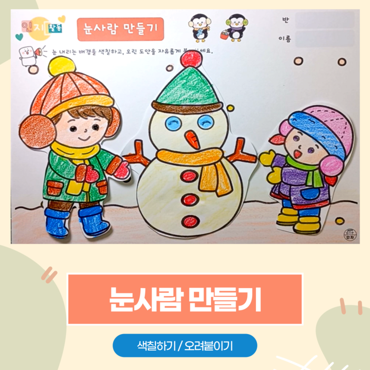 인지활동, 인지학습지, 겨울활동지, 눈사람활동지, 눈사람 색칠하기, 겨울 아이들 색칠하기, 미술수업, 인지활동자료