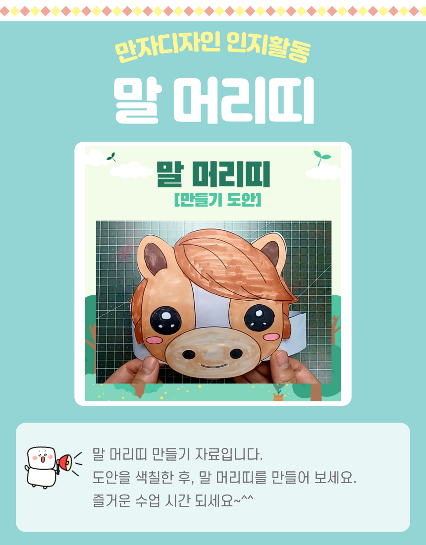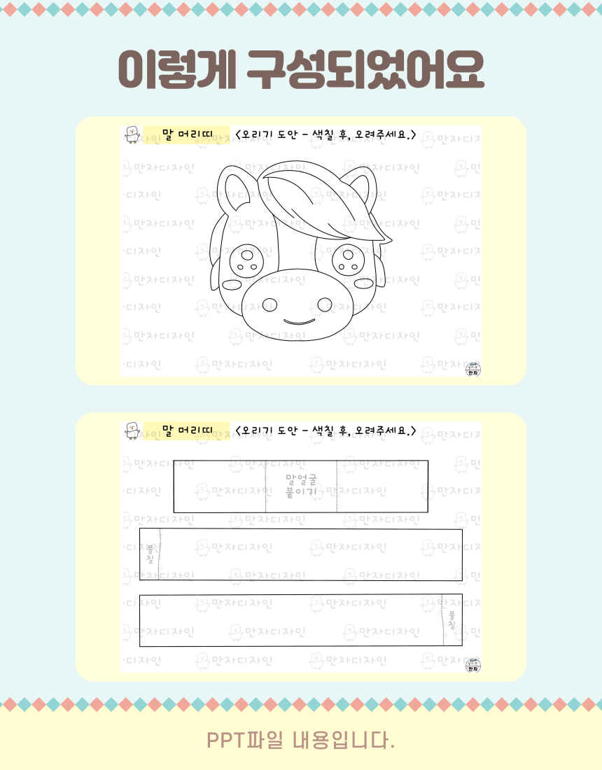 인지활동, 인지학습지, 말 도안, 말 머리띠 색칠하기, 말 머리띠 만들기, 동물만들기, 동물활동지, 봄인지활동, 미술수업