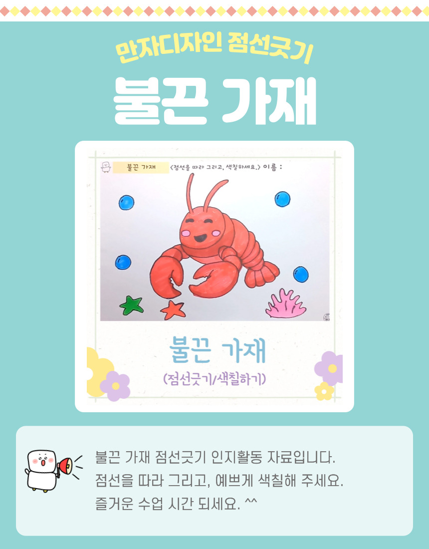 가재 색칠하기, 바닷 속 도안, 바다생물도안, 불가사리, 산호초, 물방울, 여름 색칠하기, 점선긋기, 여름활동지, 여름 인지활동, 미술수업