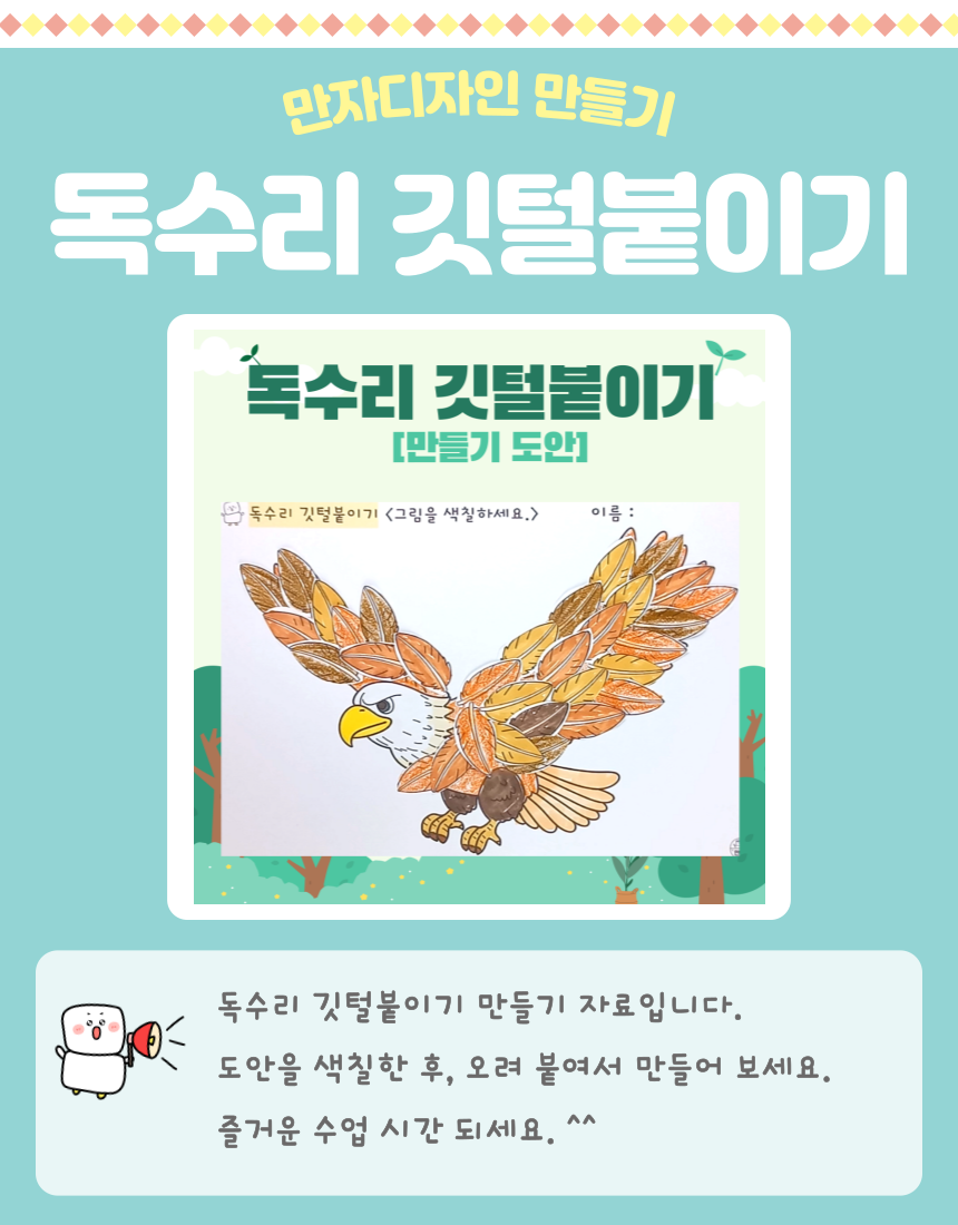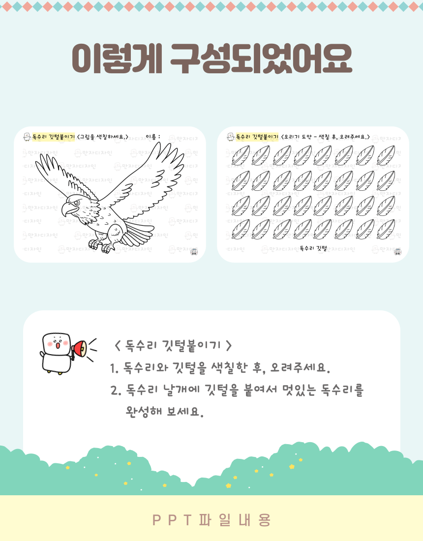 독수리 깃털붙이기, 독수리꾸미기, 깃털붙이기, 독수리 만들기, 색칠하기, 동물활동지, 동물인지활동