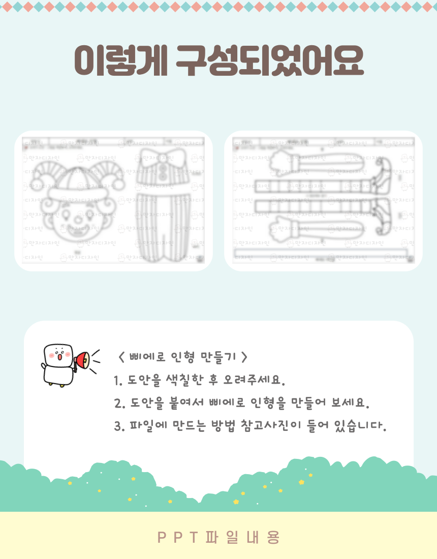 삐에로 인형 만들기, 색칠하기, 오려붙이기, 활동지, 인지활동, 미술수업