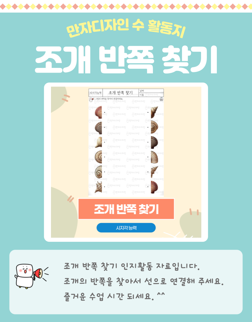 조개 반쪽 찾기, 반쪽 그림 찾기, 바다 수 활동지, 가리비, 고동, 소라, 조개 활동지, 바다생물 인지활동