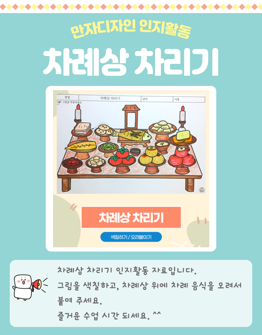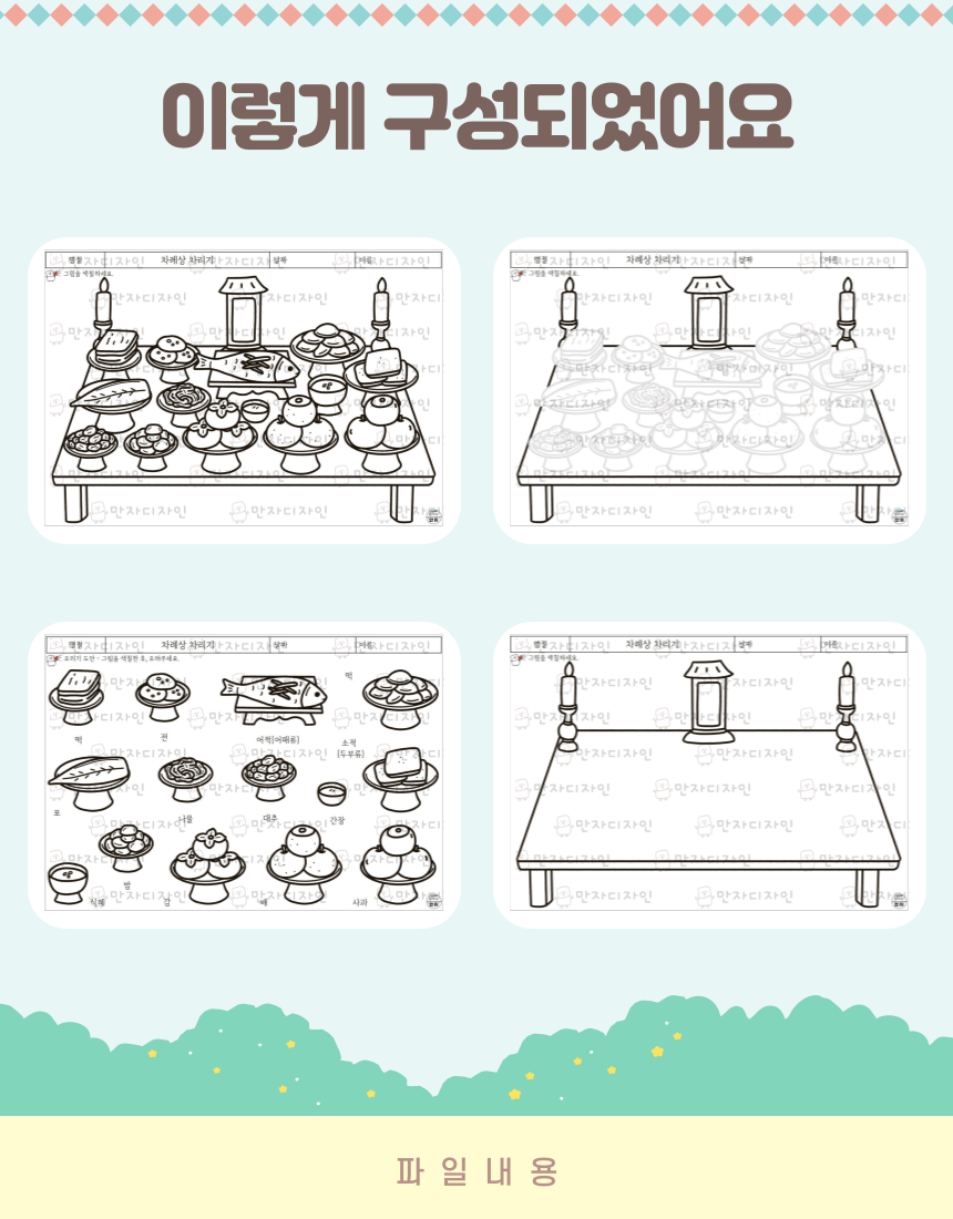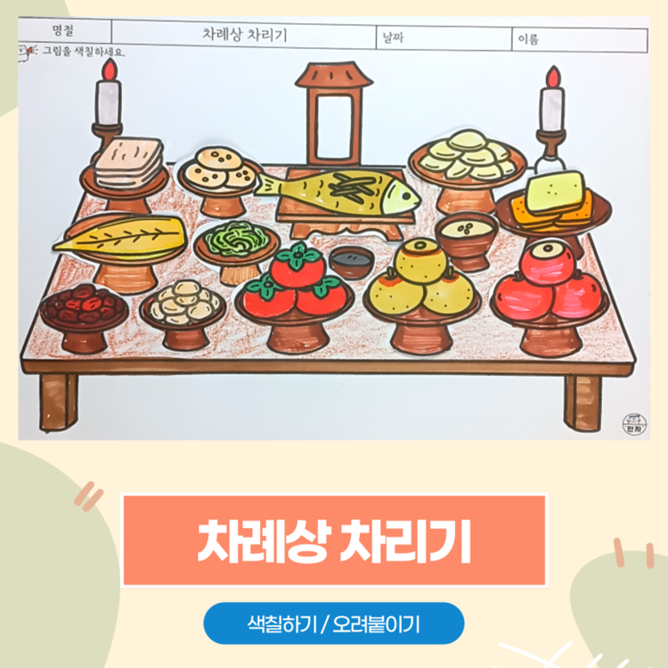 차례상 차리기, 차례 음식, 명절음식, 설날, 추석, 새해, 색칠하기, 명절 활동지, 우리나라 인지활동, 미술수업