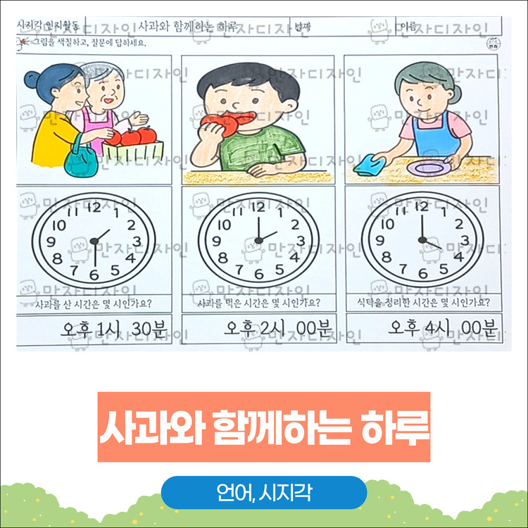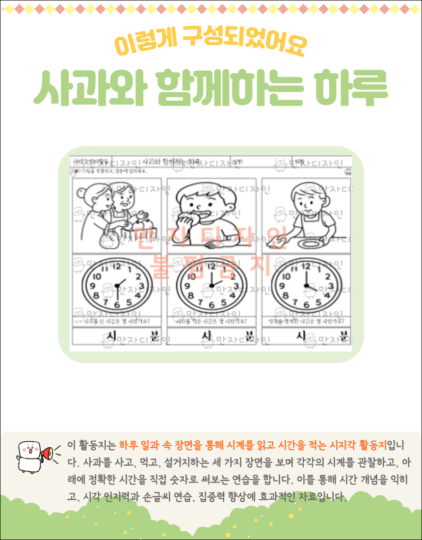 #시계읽기연습 #시간개념학습지 #시지각인지활동 #사과활동지 #어르신인지놀이 #어린이학습지 #두뇌훈련자료 #시계공부 #인지학습자료 #만자디자인